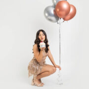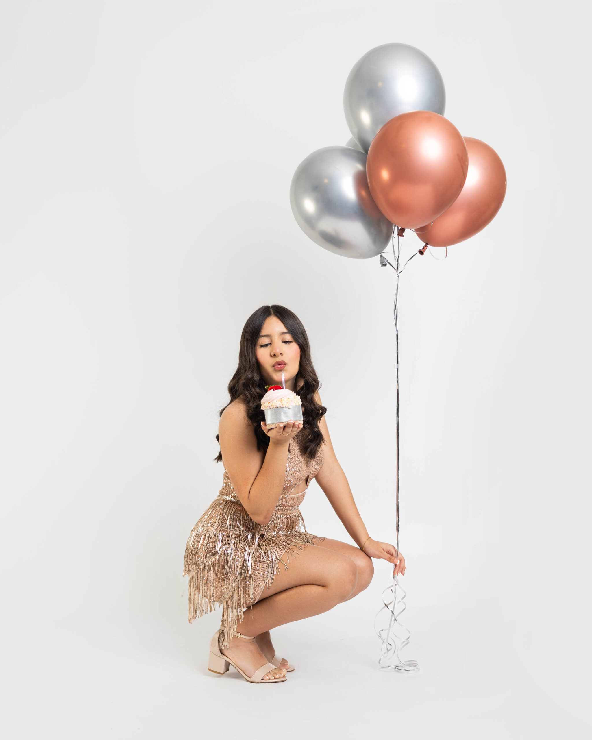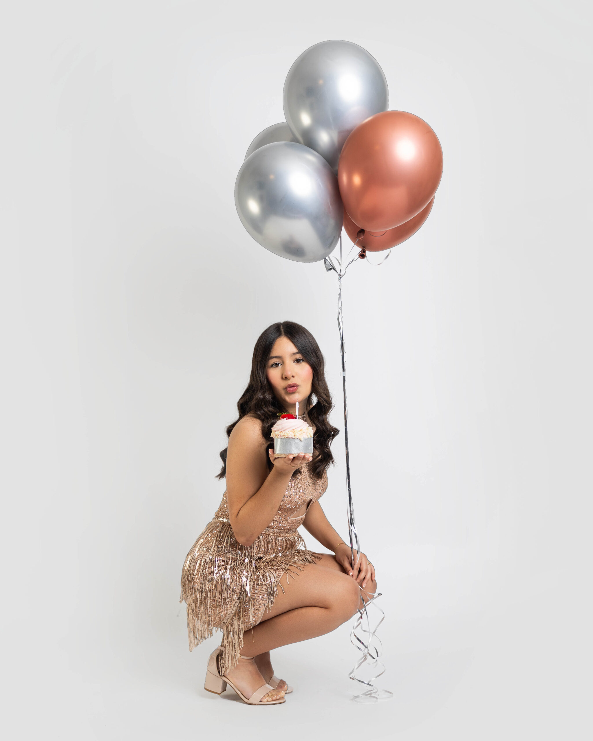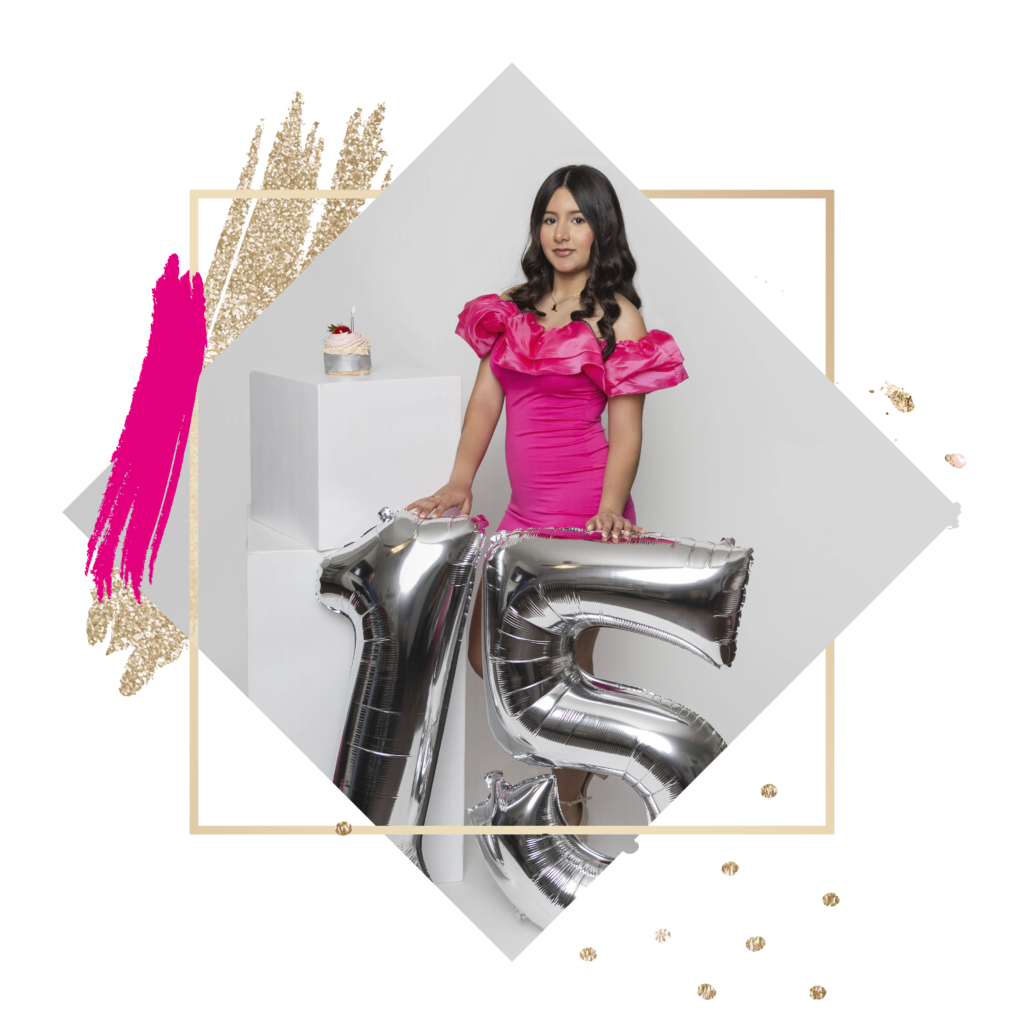 No usar nada color rosa/pink. Colores reservados para la quinceañera.